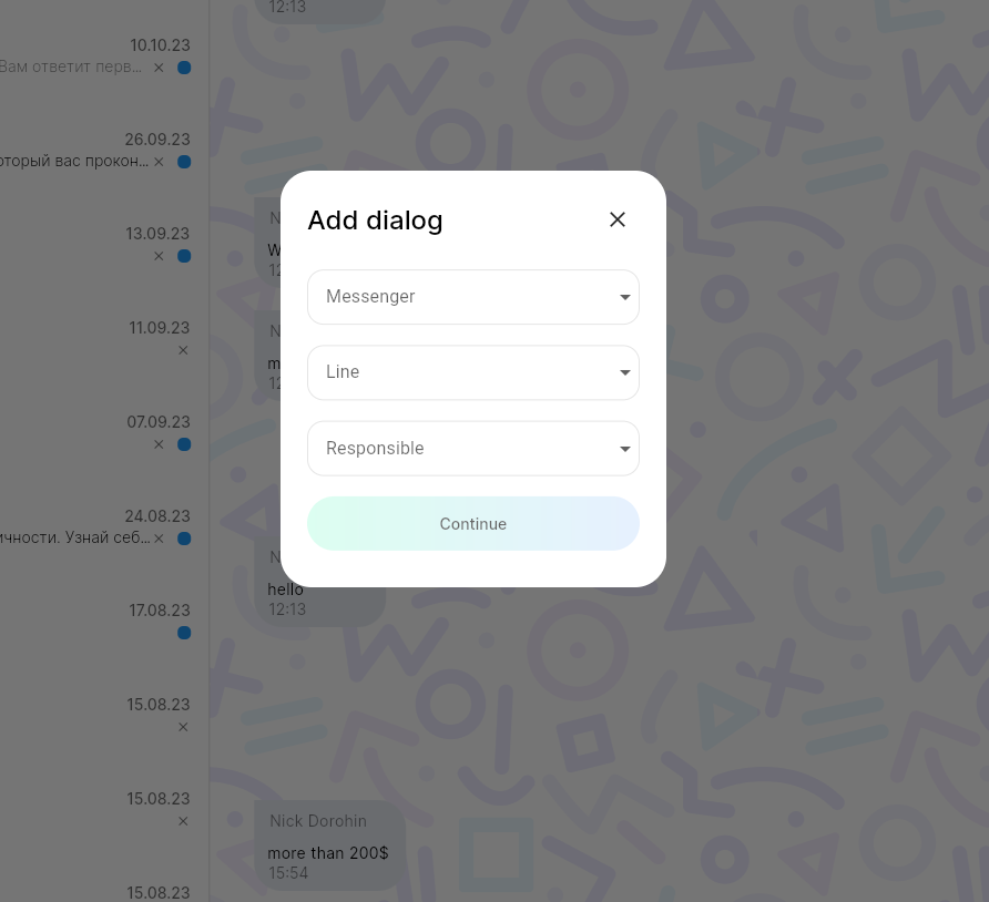 New dialog from messenger contacts or CRM