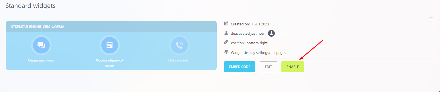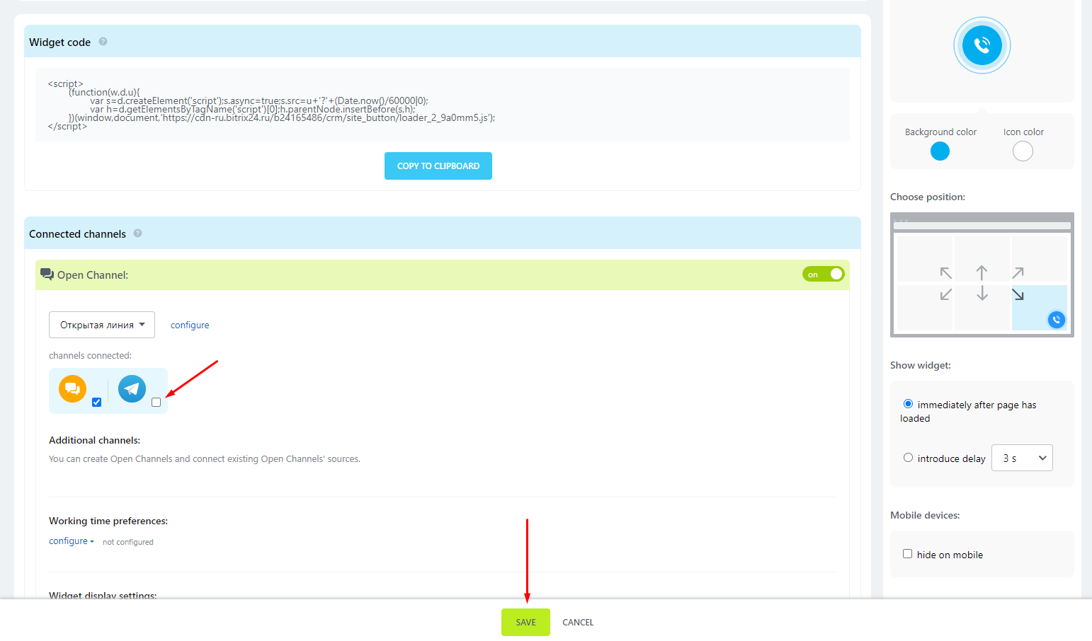 Changes to the widget will be applied in a minute. Wait a minute, reload the page and click on the desired channel in the widget.
