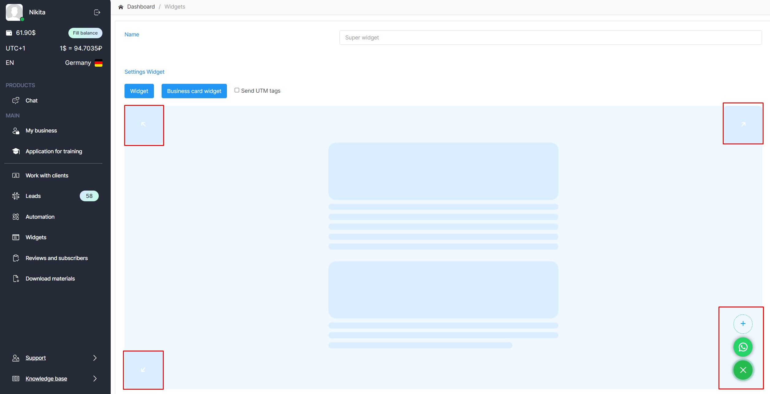 5. First select the future widget position on the site. There are 4 positions to choose from in different corners of the page. Consider where your widget will look most advantageous and noticeable to the user. Remember that the widget should always be at hand.