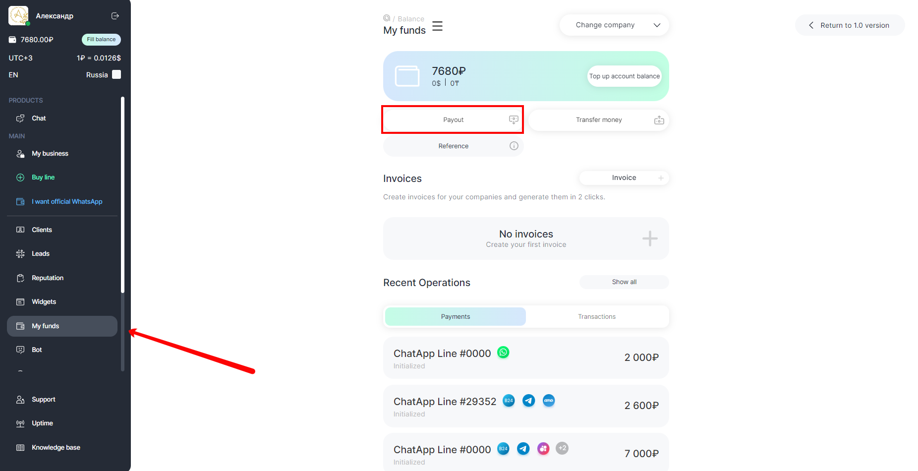 You can top up your balance in your personal ChatApp account in a convenient currency and use the funds to pay or renew your license. You can transfer funds to the balance of your customers.