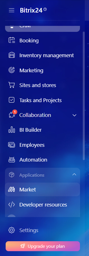 2. In the left menu, select “Applications” — “Marketplace”.