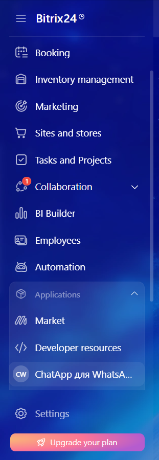 6. Select “Applications” — “ChatApp” in the left menu of Bitrix24.