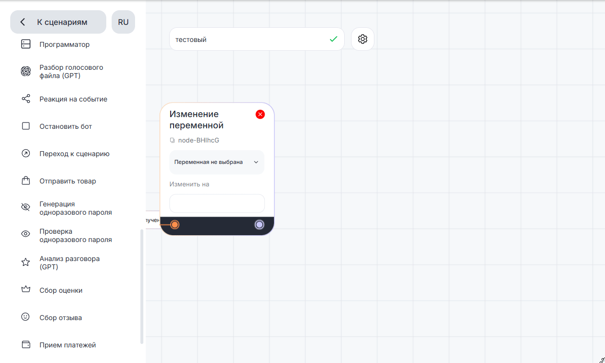 - Добавьте блок «Генерация одноразового пароля» в рабочую область