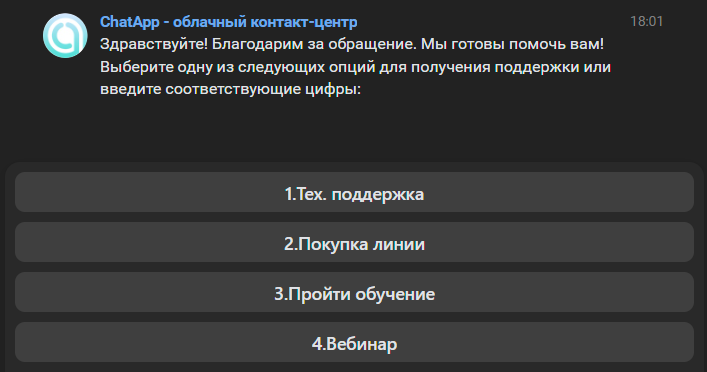 Когда клиент перейдет по глубокой ссылке, блок «Реакция на фразу» получит ключ «primer2». Клиент запустит диалог с Telegram Bot и чат-бот автоматически отправит сообщение из сценария.