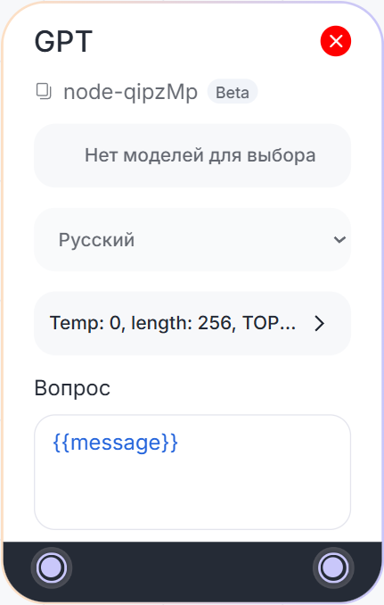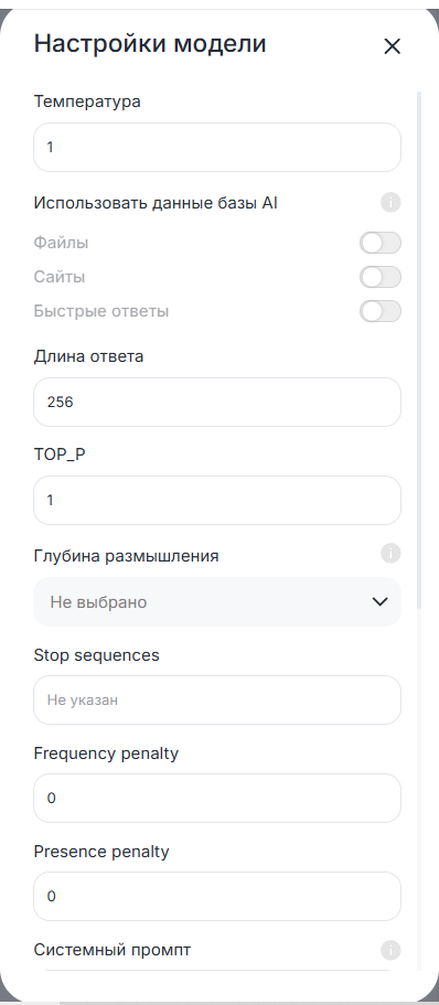 - Выбор модели — модель GPT, которая будет отвечать клиенту;