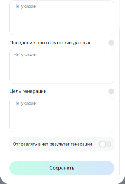 * Поведение при отсутствии данных — инструкция при отсутствии данных. Например: «Задай уточняющие вопросы».