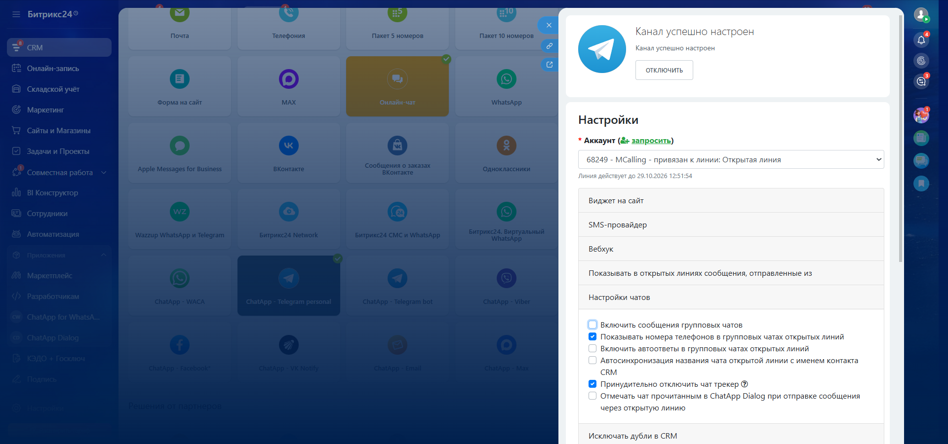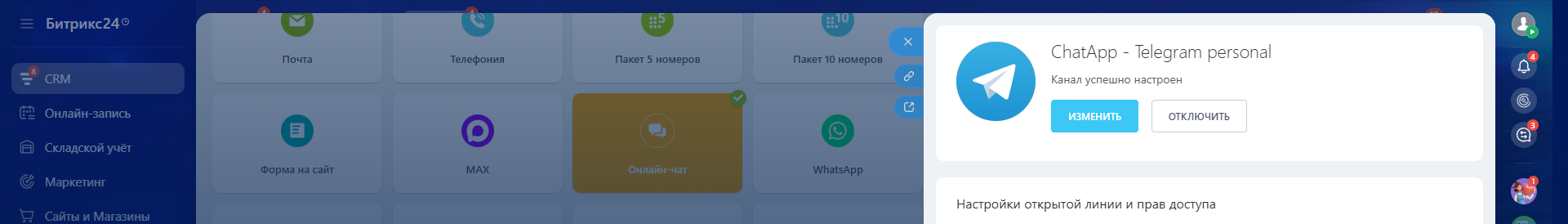 Групповые чаты Telegrtam Personal в Открытых линиях Битрикс24