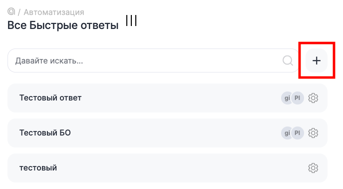 6. Чтобы создать новый быстрый ответ, нажмите на