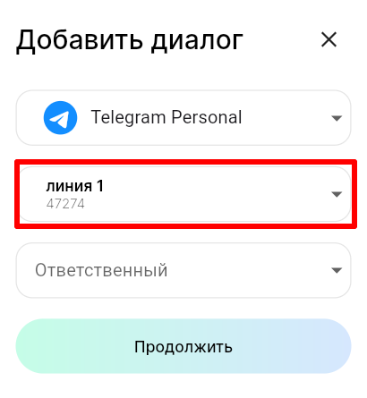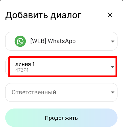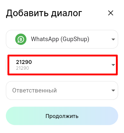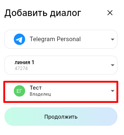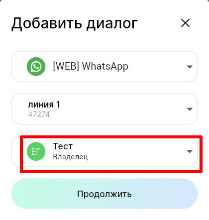 5. В поле «Ответственный» выберите сотрудника, к которому будет прикреплен диалог с