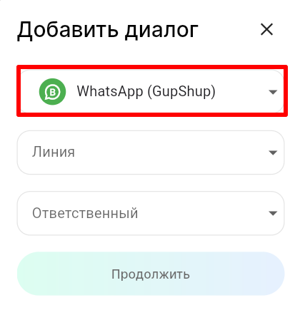 2. В строке выбора мессенджера выберите WhatsApp (GupShup).