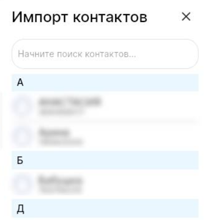 или CRM. В разделе «Импорт контактов» отобразятся доступные контакты.