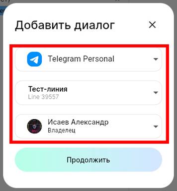к которому будет прикреплен диалог с пользователем. Нажмите «Продолжить».