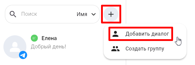 Диалог можно начать из списка контактов в вашем мессенджере или из контактов CRM.