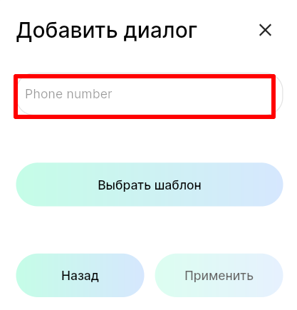 6. Введите номер телефона контакта, ChatID или импортируйте контакт из подключенного к линии канала связи.