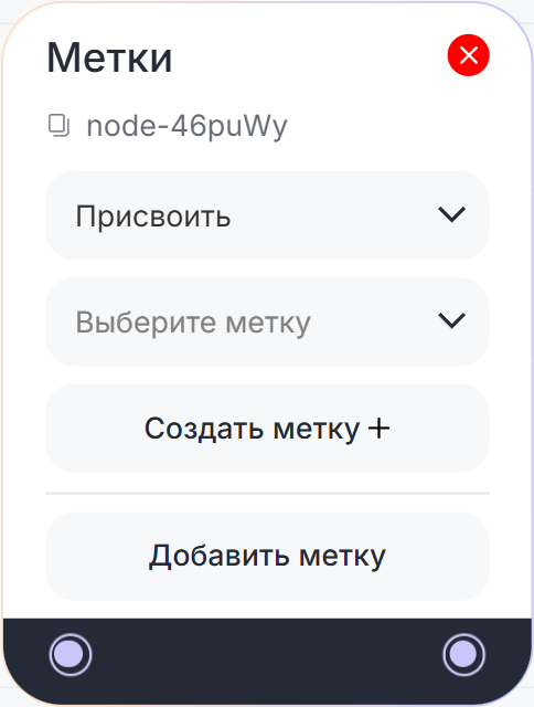 Блок «Метки» автоматически присваивает и снимает метки с диалогов. Для работы блока необходимо заранее создать нужные метки и их категории в Scenario Dialogs. Как это сделать — читайте в статье «Установка меток«.