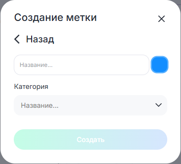 Вы можете добавить нужную вам метку в активный Проект и использовать ее в Scenario Dialogs. Для этого нажмите кнопку «Создать метку» и заполните ее параметры.