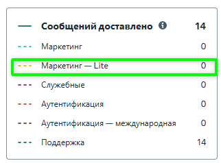 В отчётах должна отображаться категория сообщений Маркетинг— Lite.