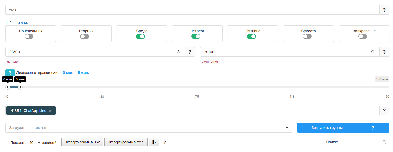 - WhatsApp — не менее 1 минуты между приглашениями.