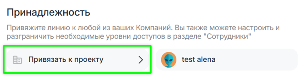 Для изменения принадлежности линии нажмите «Привязать к проекту» и выберите нужные проекты.