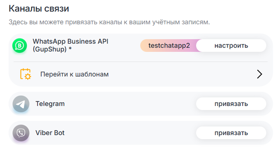 - В открывшемся разделе выберите каналы связи, которые хотите добавить.