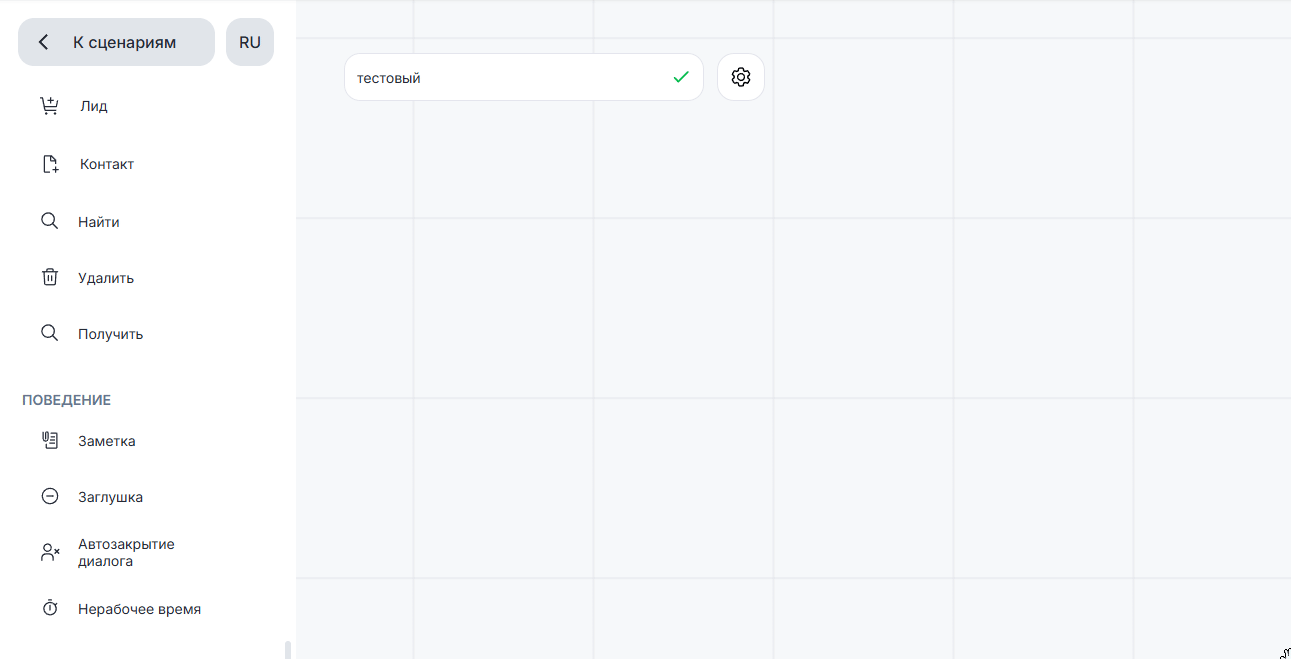 - Добавьте блок «Нерабочее время» вне основной цепочки сценария.