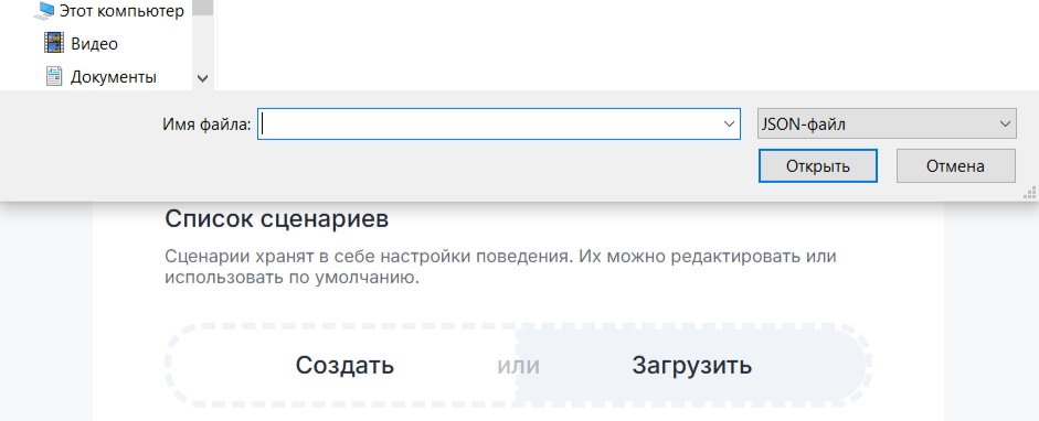 3. Загрузить готовый сценарий в виде файла .json.