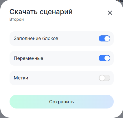 Отметьте, какие данные, кроме самого сценария, вы хотите экспортировать. Экспорт происходит в формат .json.