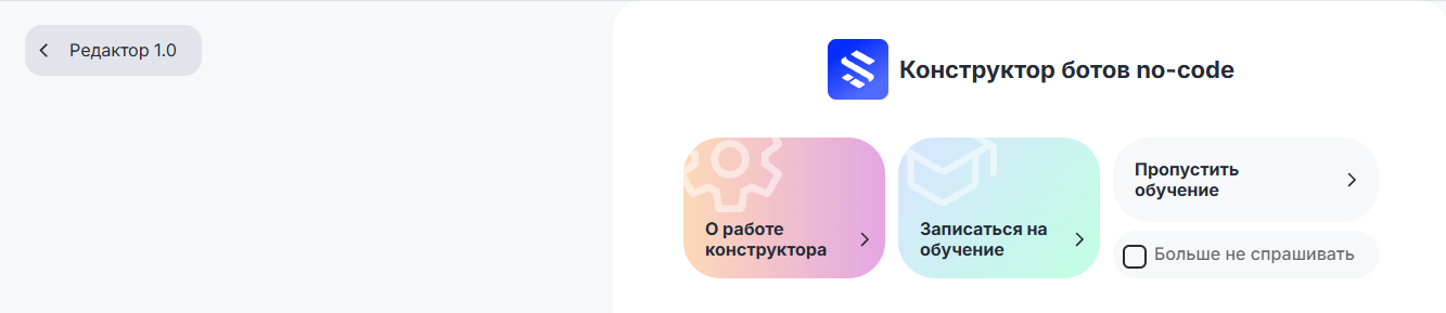 1. Прочитать статьи о работе конструктора в Базе знаний или записаться на обучение специалистами ChatApp.