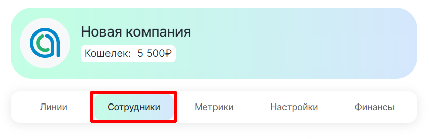 В этой вкладке отображается список подключенных к компании линий. Можете допустить сотрудника сразу ко всем, выбрать несколько или только одну.
