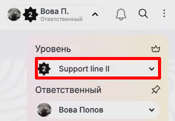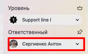 3. Если выбрать ответственного, то уровень поменяется в соответствии с ответственным.