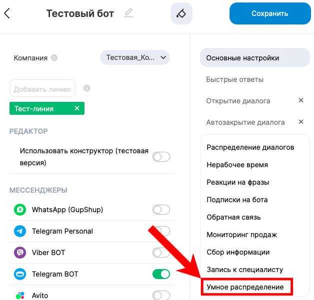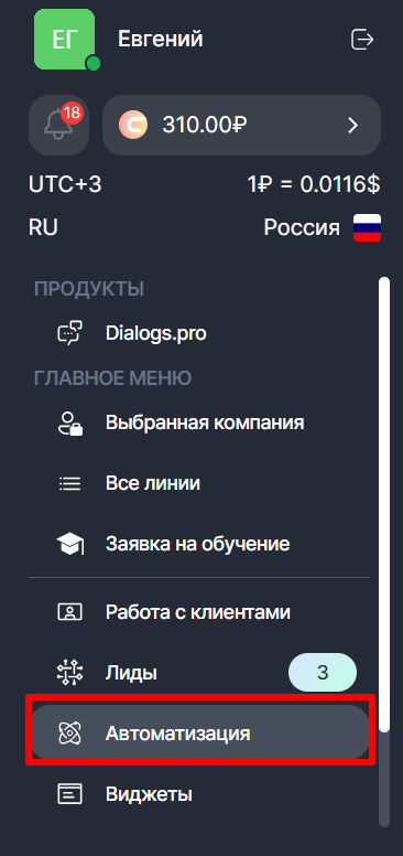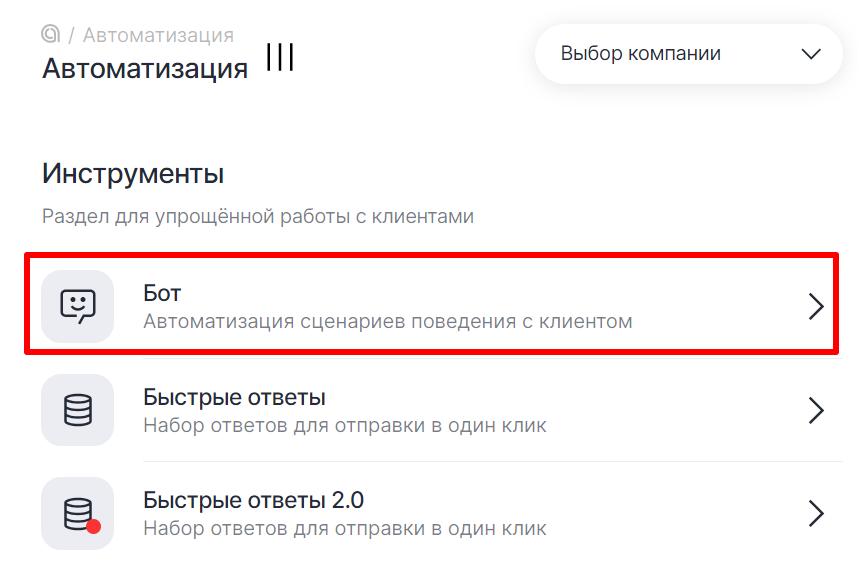 1. В разделе «Автоматизация» перейдите на вкладку «Бот»;
