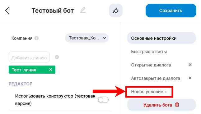 3. В меню справа нажмите на «Новое условие»;