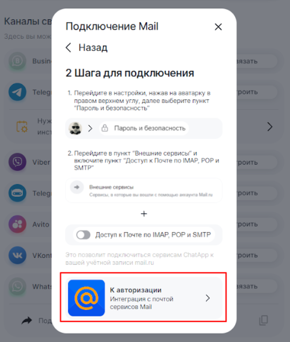 Возможно понадобиться включить доступ к почте для внешних сервисов.