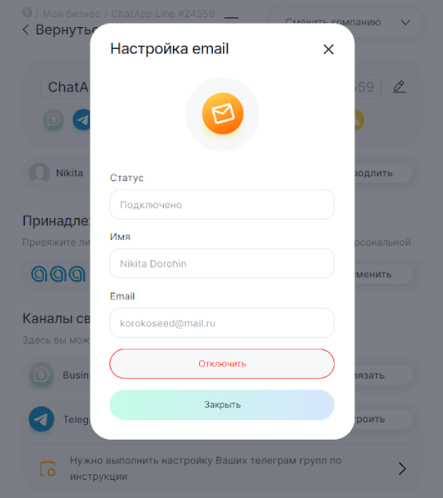 Если пункт Группировать письма отключен, то в названии чата будут отображаться данные электронной почты, а тема письма будет указана в начале сообщения в квадратных скобках. Все сообщения c этого адреса попадут в один чат.