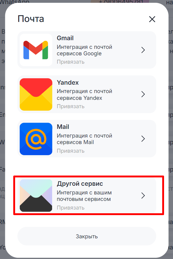 2. Найдите Email в каналах связи и нажмите «Привязать».