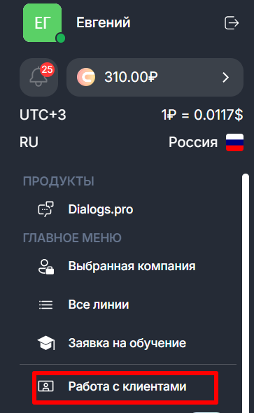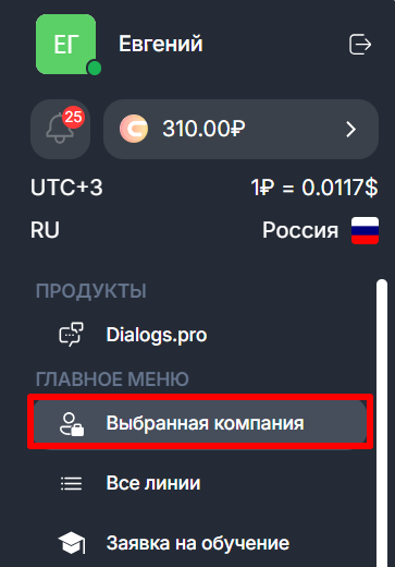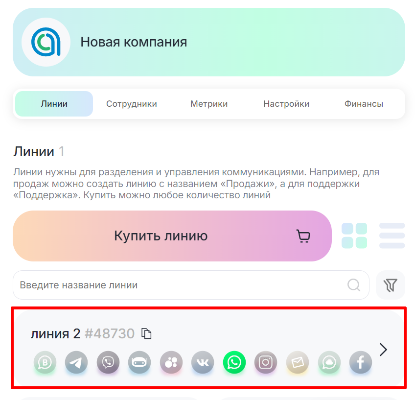 1. Перейдите в «Выбранная компания» и выберите линию с купленным Email-каналом.