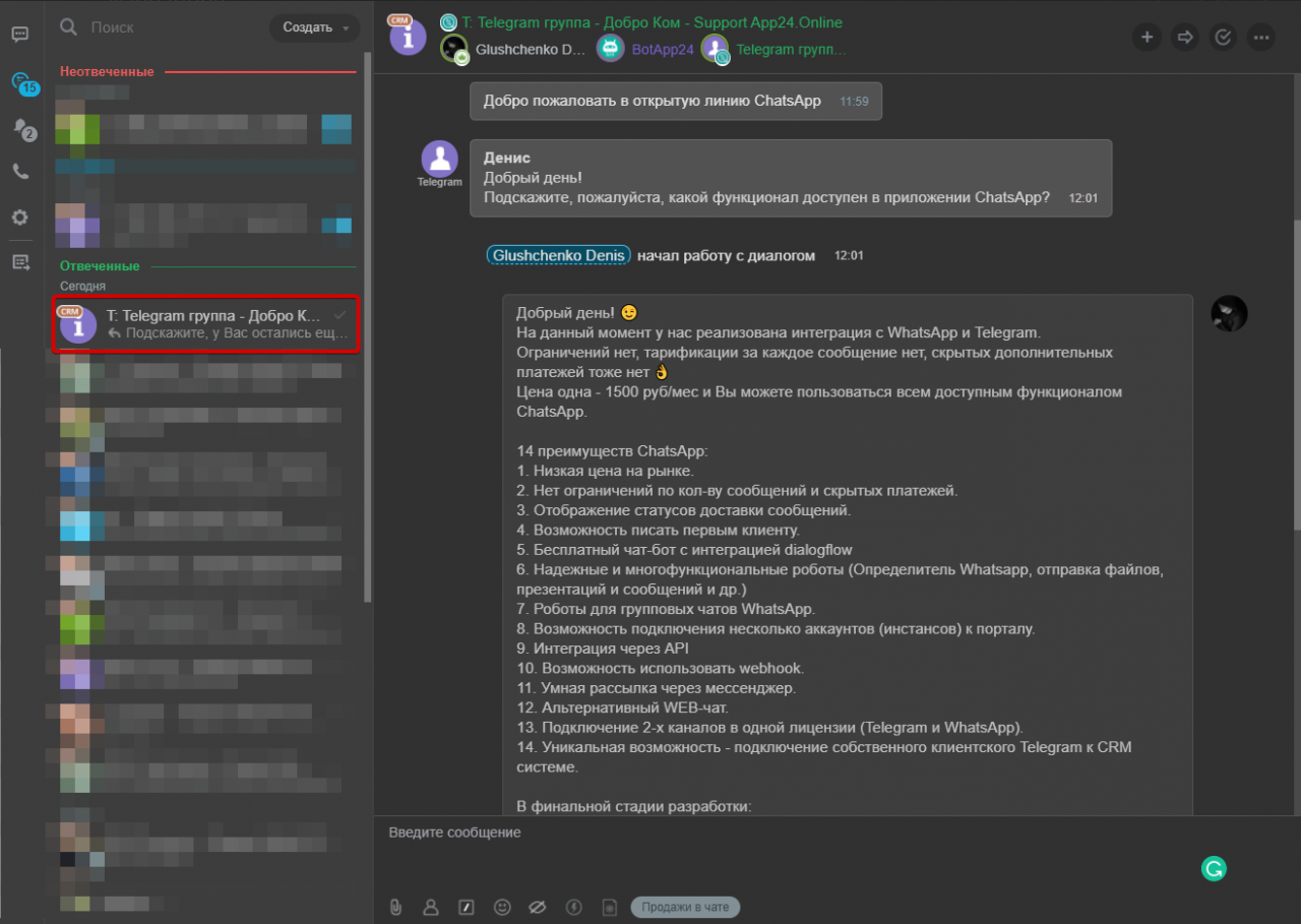 Важно! Данная возможность актуальна для следующих коннекторов: ChatApp — WhatsApp (external provider), ChatApp — Telegram personal, ChatApp — Telegram bot, ChatApp — Vkontakte.