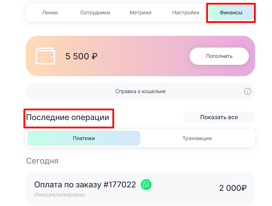 • Перейдите в раздел «Финансы» → «Последние операции».