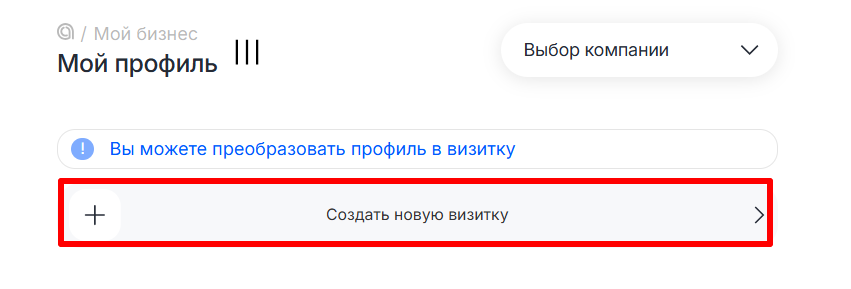 - Нажмите «Создать новую визитку».