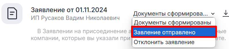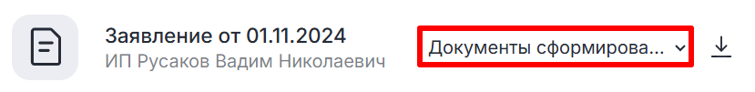 - Статус заявки изменится на «Документы сформированы».