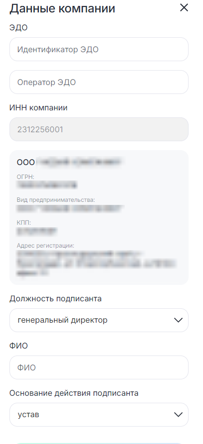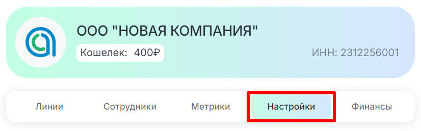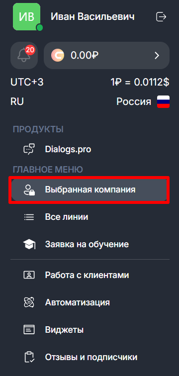 - Перейдите в раздел «Выбранная компания» в левом меню.