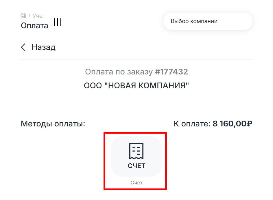 - Выберите «Счет». Для канала VK Notify доступен только этот способ оплаты.