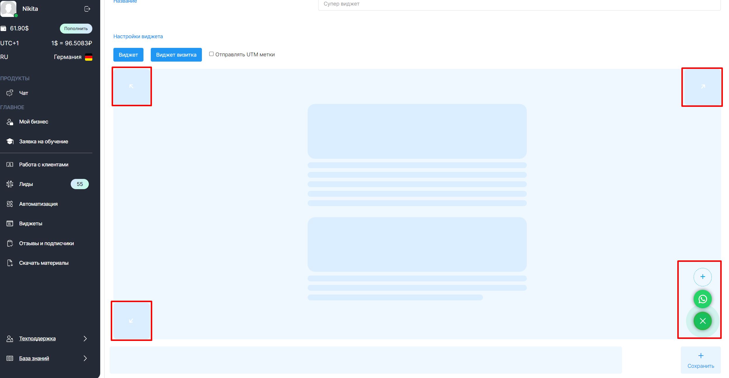 8. После добавления мессенджера в виджет, проверьте ссылки и всплывающие подсказки, а после этого, нажмите на кнопку «Сохранить».