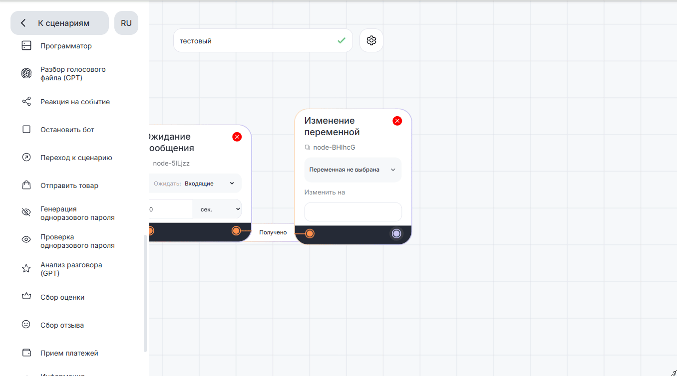 - Когда бот дойдет до блока «Отправить товар», клиенту отправится в чат карточка товара.
