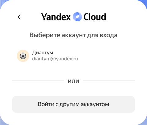 Пройдите процедуру авторизации и выберите аккаунт для подключения к YandexCloud.