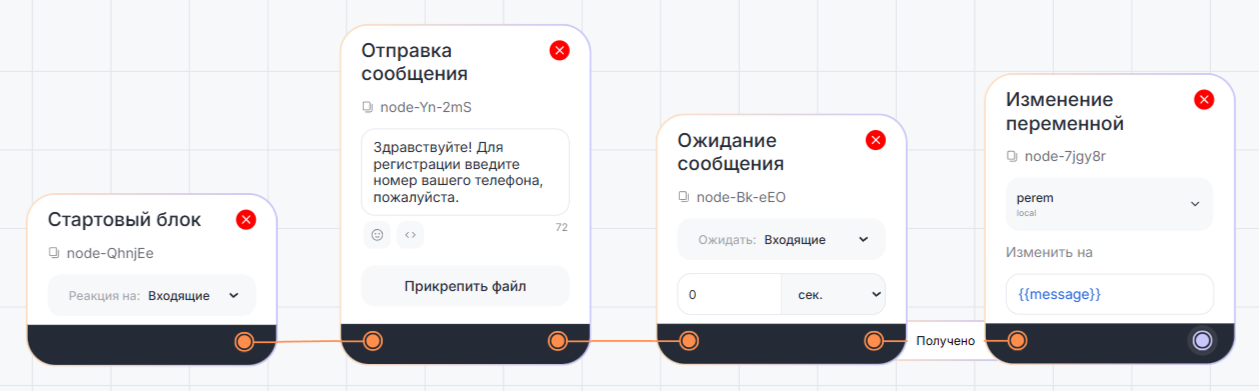 2. Номер телефона записывается в переменную {{perem}}.