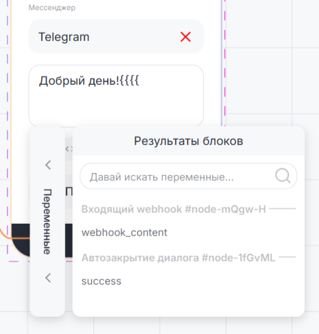- Сообщение — обязательное поле для ввода сообщения. Если оставить пустым, то блок не сработает и сценарий не запустится.
