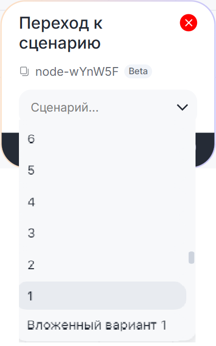- Во вложенный сценарий можно добавить только один блок «Переход к сценарию».