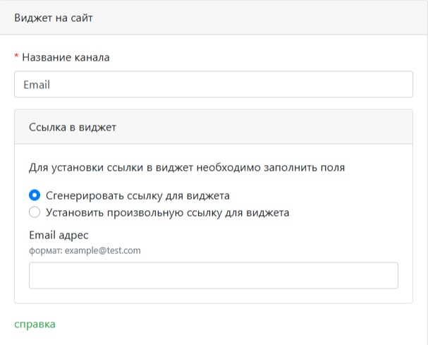 - Виджет на сайт — удобное для вас название канала и ссылка на виджет на вашем сайте для быстрой коммуникации клиентов с вами.