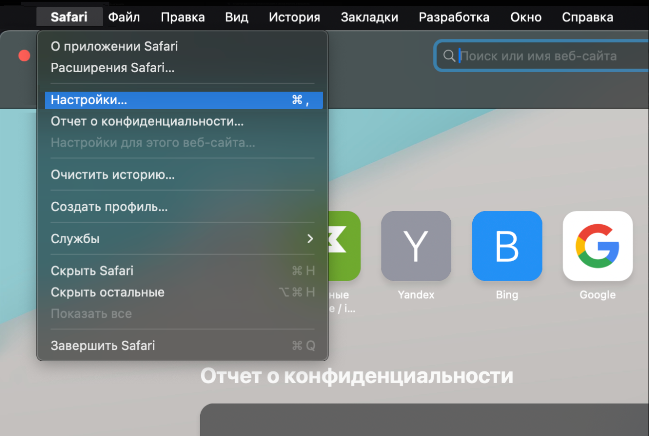 1. Перейдите в Safari — «Настройки».